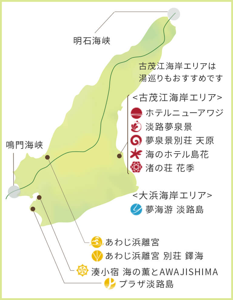 個性豊かなホテルニューアワジグループの宿からお好みのホテルを見つけたなら、